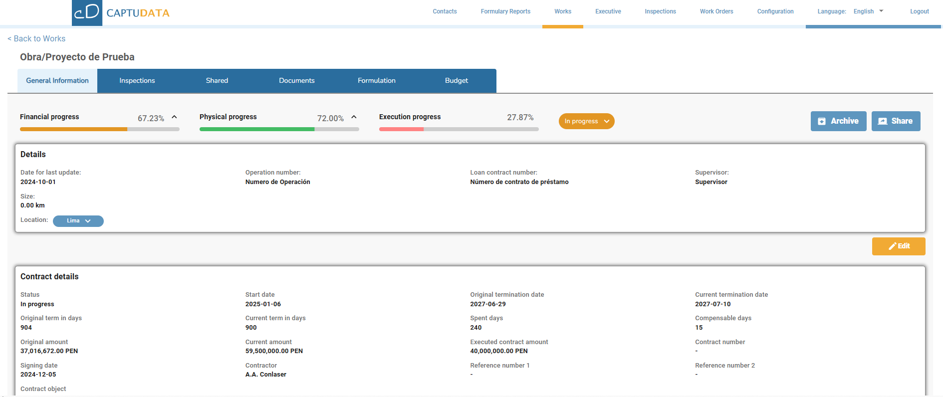 Viewing information of the works in a program The system allows you to easily consult the information of the works or projects that belong to a program through the use of filters and quick views. ? Steps to view the information Log in to CaptuData ...