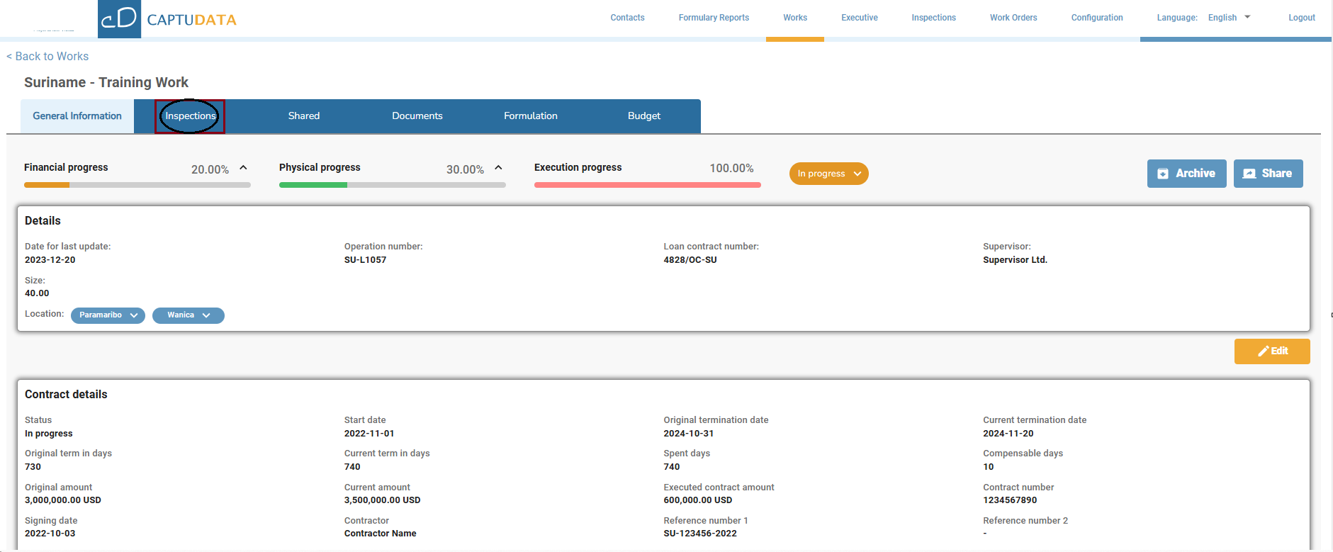 View Inspection Details To see the details of an inspection for a specific project or work site, follow these steps: ? Steps to View Inspection Details Open the Projects Panel Go to the Projects/Works panel. Search for the Project Locate the project ...
