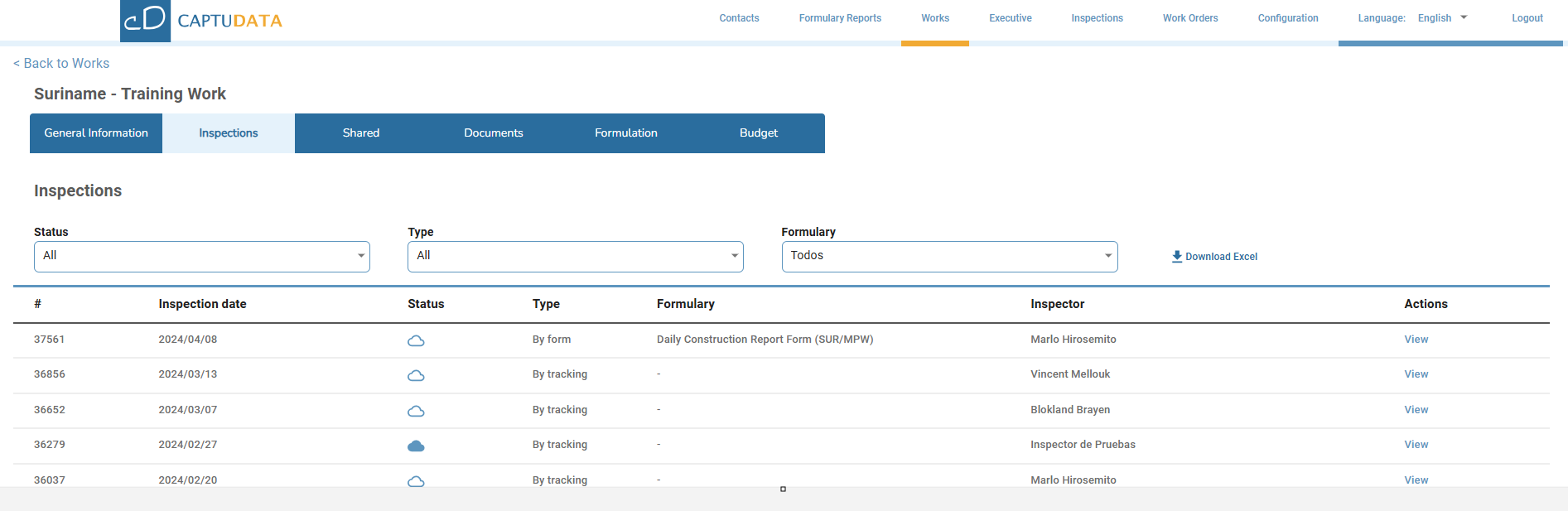 Once you have completed all the steps, you will be able to view the full list of inspections carried out for the selected project.