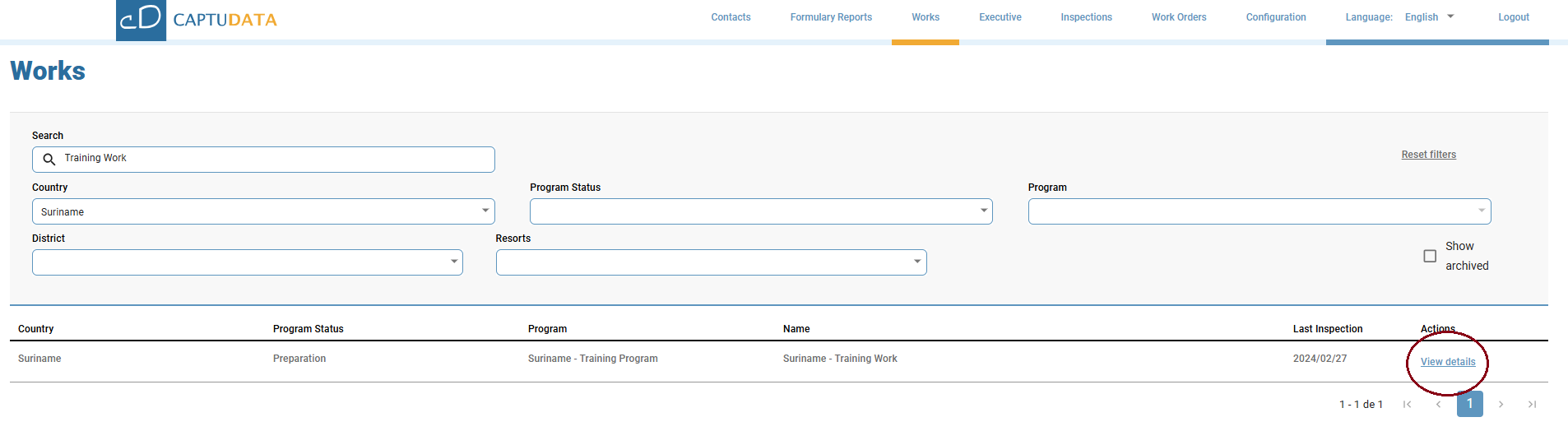 Go to the Projects/Works panel and search for the project or work site you want to view.