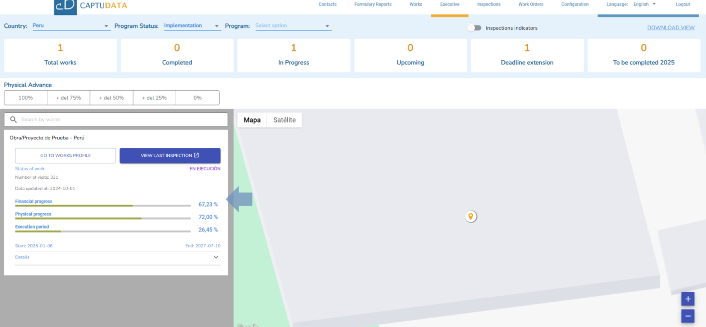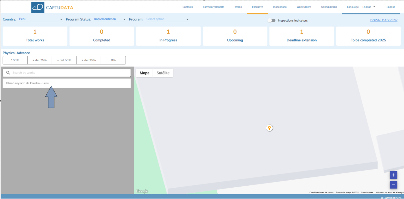 How to view the details of a work in CaptuData The system allows you to consult the general and progress information of each work, as well as its location on the map, directly from the program view. ? Steps to view the details of a work Log in to ...