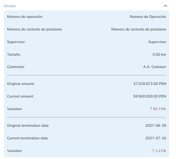 When expanding the details of a work, in addition to its progress and location on the map, you can also consult other important data related to the project.