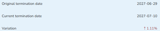 Indicates a percentage showing if the projected delivery date has changed compared to the originally planned date.