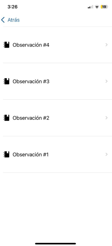 Uma lista de observações será exibida, apresentando todos os dados coletados.